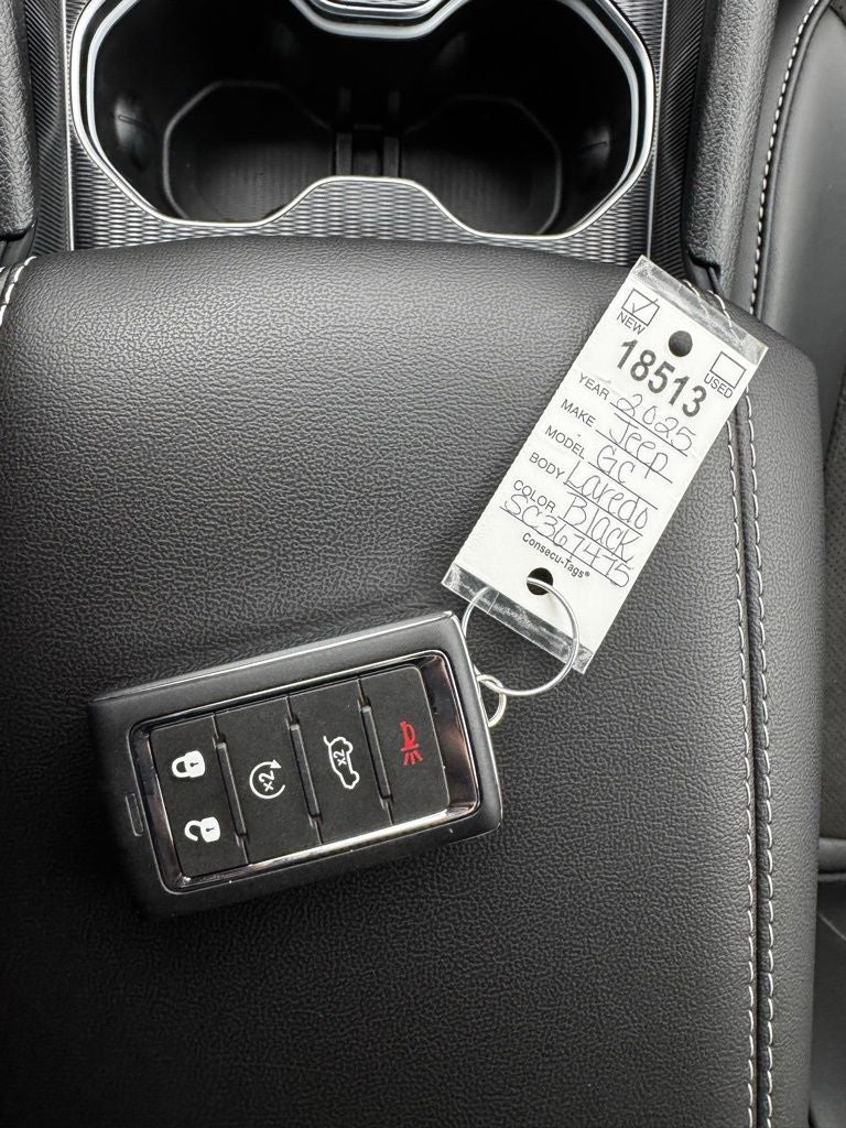Diamond Black Crystal Pearlcoat 2025 Jeep Grand Cherokee 4WD 8-Speed Automatic 3.6L V6 24V VVT 4WD, 180 Amp Alternator, 4-Wheel Disc Brakes, 6 Speakers, 7 and 4-Pin Wiring Harness, ABS brakes, Air Conditioning, Alloy wheels, AM/FM radio: SiriusXM, Anti-whiplash front head restraints, Automatic Headlamp Levelling System, Automatic temperature control, Brake assist, Bumpers: body-color, Class IV Receiver Hitch, Cloth Seats, Compass, Delay-off headlights, Driver door bin, Driver vanity mirror, Dual front impact airbags, Dual front side impact airbags, Electronic Stability Control, Emergency communication system, Four wheel independent suspension, Front anti-roll bar, Front Bucket Seats, Front Center Armrest w/Storage, Front dual zone A/C, Front License Plate Bracket, Front reading lights, Fully automatic headlights, Heated door mirrors, Heavy-Duty Engine Cooling, Illuminated entry, Knee airbag, Low tire pressure warning, Model Year Tracking, MOPAR Finishing Package, MOPAR Front Splash Guards, MOPAR Paint Protection Film, MOPAR Rear Splash Guards with Jeep Logo, Normal Duty Suspension, Occupant sensing airbag, Outside temperature display, Overhead airbag, Overhead console, Panic alarm, ParkView Rear Back-Up Camera, Passenger door bin, Passenger vanity mirror, Power door mirrors, Power driver seat, Power steering, Power windows, Radio data system, Radio: Uconnect 5 with 8.4 Display, Rear anti-roll bar, Rear Load Levelling Suspension, Rear reading lights, Rear window defroster, Rear window wiper, Remote keyless entry, Security system, Speed control, Speed-Sensitive Wipers, Split folding rear seat, Spoiler, Steering wheel mounted audio controls, Tachometer, Telescoping steering wheel, Tilt steering wheel, Traction control, Trailer Hitch Zoom, Trailer Tow Package, Trip computer, Variably intermittent wipers, Voltmeter, Wheels: 17 x 6.5 Fully Painted Aluminum, Wheels: 18 x 8 Fully Painted Aluminum 1, 4WD.
