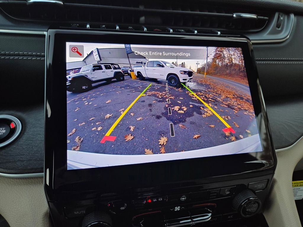 This Vehicle Features Black Appearance Package (Gloss Black Exterior Accents and Wheels: 20 x 8.5 Gloss Black Painted Aluminum), Quick Order Package 22E, 4WD, 4-Wheel Disc Brakes, 6 Speakers, ABS brakes, Active Noise Control System, Air Conditioning, Alloy wheels, AM/FM radio: SiriusXM with 360L, Anti-whiplash front head restraints, Audio memory, Auto High-beam Headlights, Automatic temperature control, Brake assist, Bumpers: body-color, Capri Leatherette Seats, Compass, Delay-off headlights, Driver door bin, Driver vanity mirror, Dual front impact airbags, Dual front side impact airbags, Electronic Stability Control, Emergency communication system, Four wheel independent suspension, Front anti-roll bar, Front Bucket Seats, Front Center Armrest w/Storage, Front dual zone A/C, Front fog lights, Front License Plate Bracket, Front reading lights, Fully automatic headlights, Garage door transmitter, Heated door mirrors, Heated front seats, Heated rear seats, Heated steering wheel, Illuminated entry, Knee airbag, Low tire pressure warning, Memory seat, Model Year Tracking, Navigation System, Normal Duty Suspension, Occupant sensing airbag, Outside temperature display, Overhead airbag, Overhead console, Panic alarm, ParkView Rear Back-Up Camera, Passenger door bin, Passenger vanity mirror, Power door mirrors, Power driver seat, Power Liftgate, Power passenger seat, Power steering, Power windows, Radio data system, Rear anti-roll bar, Rear reading lights, Rear window defroster, Rear window wiper, Remote keyless entry, Security system, Speed control, Speed-Sensitive Wipers, Split folding rear seat, Spoiler, Steering wheel mounted audio controls, Tachometer, Telescoping steering wheel, Tilt steering wheel, Traction control, Trip computer, Turn signal indicator mirrors, Variably intermittent wipers, Voltmeter, and Wheels: 18 x 8 Polished/Painted Aluminum.