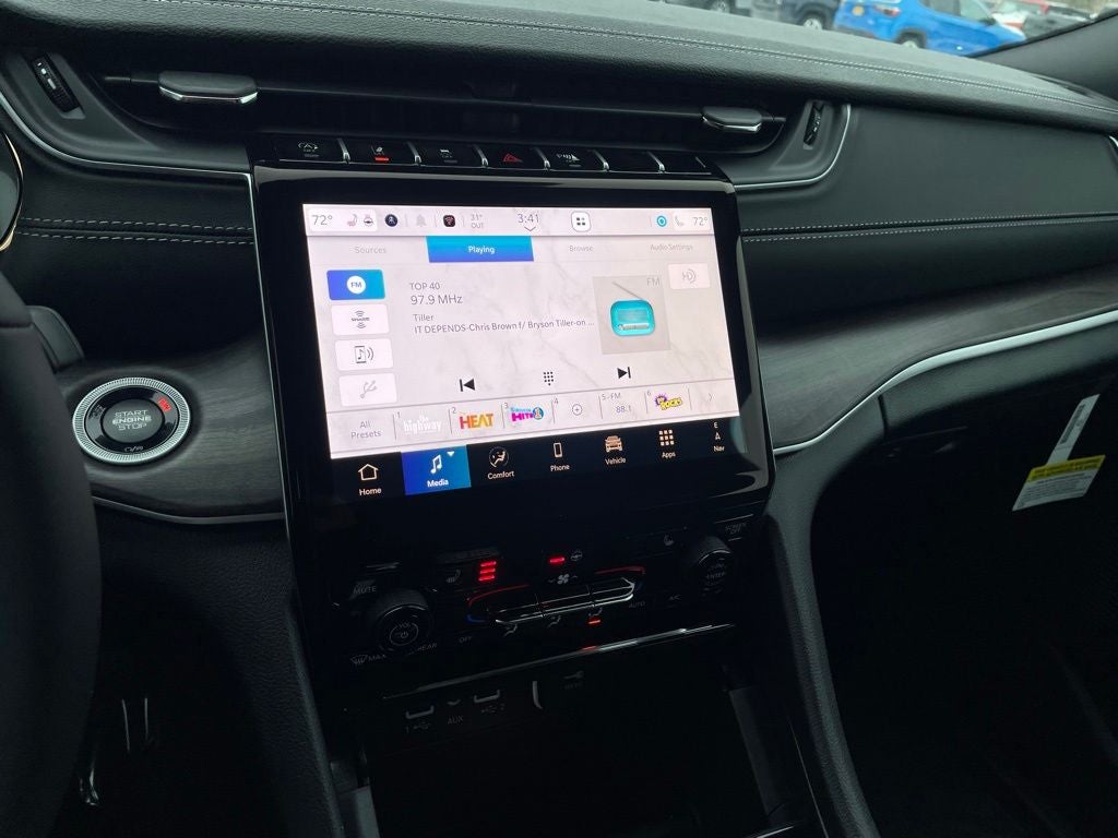 This Vehicle Features Black Appearance Package (Gloss Black Exterior Accents and Wheels: 20 x 8.5 Gloss Black Painted Aluminum), Quick Order Package 23E, 4WD, 4-Wheel Disc Brakes, 6 Speakers, ABS brakes, Active Noise Control System, Air Conditioning, Alloy wheels, AM/FM radio: SiriusXM with 360L, Anti-whiplash front head restraints, Audio memory, Auto High-beam Headlights, Automatic temperature control, Brake assist, Bumpers: body-color, Capri Leatherette Seats, Compass, Delay-off headlights, Driver door bin, Driver vanity mirror, Dual front impact airbags, Dual front side impact airbags, Electronic Stability Control, Emergency communication system, Four wheel independent suspension, Front anti-roll bar, Front Bucket Seats, Front Center Armrest w/Storage, Front dual zone A/C, Front fog lights, Front License Plate Bracket, Front reading lights, Fully automatic headlights, Garage door transmitter, Heated door mirrors, Heated front seats, Heated rear seats, Heated steering wheel, Illuminated entry, Knee airbag, Low tire pressure warning, Memory seat, Model Year Tracking, Navigation System, Normal Duty Suspension, Occupant sensing airbag, Outside temperature display, Overhead airbag, Overhead console, Panic alarm, ParkView Rear Back-Up Camera, Passenger door bin, Passenger vanity mirror, Power door mirrors, Power driver seat, Power Liftgate, Power passenger seat, Power steering, Power windows, Radio data system, Radio: Uconnect 5 Nav with 10.1 Display, Rear anti-roll bar, Rear reading lights, Rear window defroster, Rear window wiper, Remote keyless entry, Security system, Speed control, Speed-Sensitive Wipers, Split folding rear seat, Spoiler, Steering wheel mounted audio controls, Tachometer, Telescoping steering wheel, Tilt steering wheel, Traction control, Trip computer, Turn signal indicator mirrors, Varia