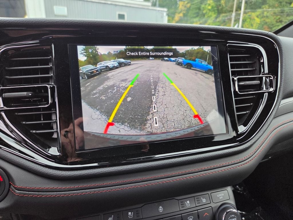 This Vehicle Features Blacktop Package (Black Roof Rails, Gloss Black Badges, GT Gloss Black Badging, Integrated Roof Rail Crossbars, Satin Black Dodge Tail Lamp Badge, and Wheels: 20 x 8 Black Noise Aluminum), Quick Order Package 2BH GT Plus (115V Auxiliary Power Outlet, 180 Amp Alternator, 506 Watt Amplifier, Advanced Brake Assist, Auto High Beam Headlamp Control, Auto-Dimming Exterior Driver Mirror, Bright Cargo Area Scuff Pads, Class IV Receiver Hitch, Dual Remote USB Port - Charge Only, Full Speed Forward Collision Warning Plus, Gloss Black Exterior Mirrors, Heated Second Row Seats, Heavy-Duty Engine Cooling, Lane Departure Warning Plus, Leather Trimmed Bucket Seats, Leather Wrapped Door Panels, Power 6x9 Multi-Function Foldaway Mirrors, Power 8-Way Driver Memory 8-Way Passenger Seats, Power Driver/Passenger 4-Way Lumbar Adjust, Power Sunroof, Rear Load Leveling Suspension, Red Accent Stitching, Security Alarm, Trailer Brake Control, Ventilated Front Seats, and Wireless Charging Pad), AWD, 3.45 Rear Axle Ratio, 3rd row seats: split-bench, 4-Wheel Disc Brakes, 6 Speakers, ABS brakes, Air Conditioning, Alloy wheels, AM/FM radio: S