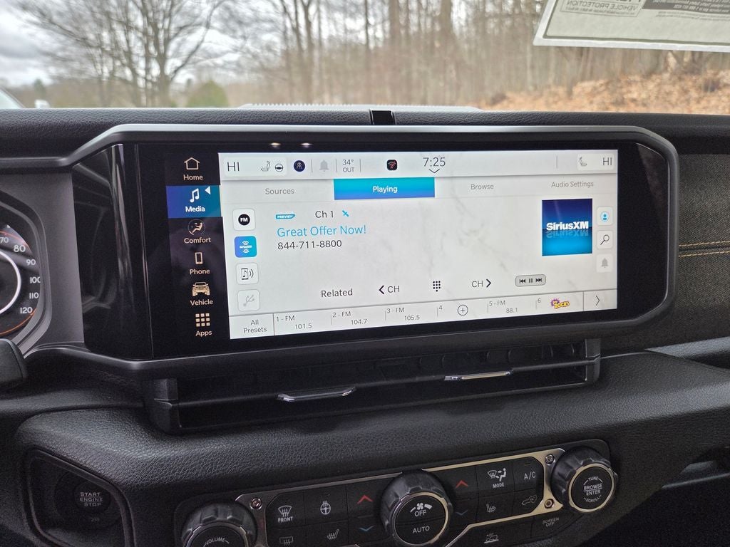 This Vehicle Features Convenience Group (2-Door Passive Entry, Front Door Locks, Air Conditioning with Auto Temp Control, Air Filtering, Cluster 7.0 TFT Color Display, Emergency/Assistance Call, Heated Front Seats, Heated Steering Wheel, and Universal Garage Door Opener), Quick Order Package 22H Willys 41 (4WD Willys '41 Swing Gate Decal, 7 and 4 Pin Wiring Harness, 97 MPH Vehicle Max Speed Calibration, Adaptive Cruise Control with Stop, Advanced Brake Assist, Automatic Headlamps, Auxiliary Switches, Body Color Grille with Gloss Black Rings, Body Color Rubicon Highline Flare, Class II Receiver Hitch, Cloth Low-Back Bucket Seats, Conventional Differential Front Axle, Corning Gorilla Glass, Dana M210 Wide HD Tube Front Axle, Dana M220 Wide Rear Axle, Daytime Running Lamps LED Accents, Deep Tint Sunscreen Windows, E-Locker Rear Axle, Front LED Fog Lamps, Full Speed Forward Collision Warning Plus, LED Premium Reflector Headlamps, MOPAR All-Weather