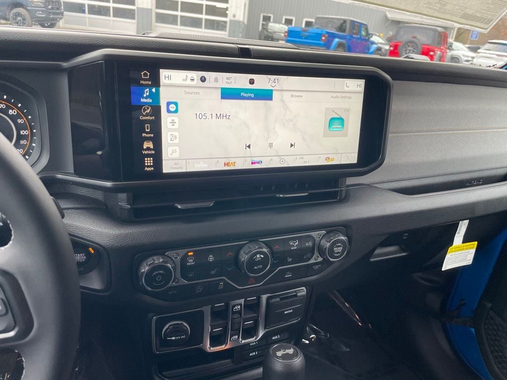 This Vehicle Features Convenience Group (2-Door Passive Entry, Front Door Locks, Air Conditioning with Auto Temp Control, Air Filtering, Cluster 7.0 TFT Color Display, Emergency/Assistance Call, Heated Front Seats, Heated Steering Wheel, and Universal Garage Door Opener), LED Headlamp and Fog Lamp Group (Front LED Fog Lamps and LED Premium Reflector Headlamps), Quick Order Package 22S Sport S (Advanced Brake Assist, Automatic Headlamps, Corning Gorilla Glass, Deep Tint Sunscreen Windows, Enhanced Adaptive Cruise Control, Full Speed Forward Collision Warning Plus, Power Heated Mirrors, Premium Wrapped Steering Wheel, Security Alarm, Sun Visors with Illuminated Vanity Mirrors, and Wheels: 17 x 7.5 Gray), Trailer Tow and Auxiliary Switch Group (7 and 4 Pin Wiring Harness, Auxiliary Switches, and Class II Receiver Hitch), 12.3 Touchscreen Display, 3.45 Overall Top Gear Ratio, 4-Wheel Disc Brakes, 4G LTE Wi-Fi Hot Spot, 8 Speakers, ABS brakes, Air Conditioning, AM/FM radio: SiriusXM with 360L, Apple CarPlay, Apple CarPlay/Android Auto, Aux Battery, Black 3-Piece Hard Top, Brake assist, Compass, Connectivity - US/Canada, Delay-off headlights, Driver door bin, Driver vanity mirror, Dual front impact airbags, Dual front side impact airbags, Electronic Stability Control, For More Info, Call 800-643-2112, Freedom Panel Storage Bag, Front anti-roll bar, Front Bucket Seats, Front Center Armrest w/Storage, Front fog