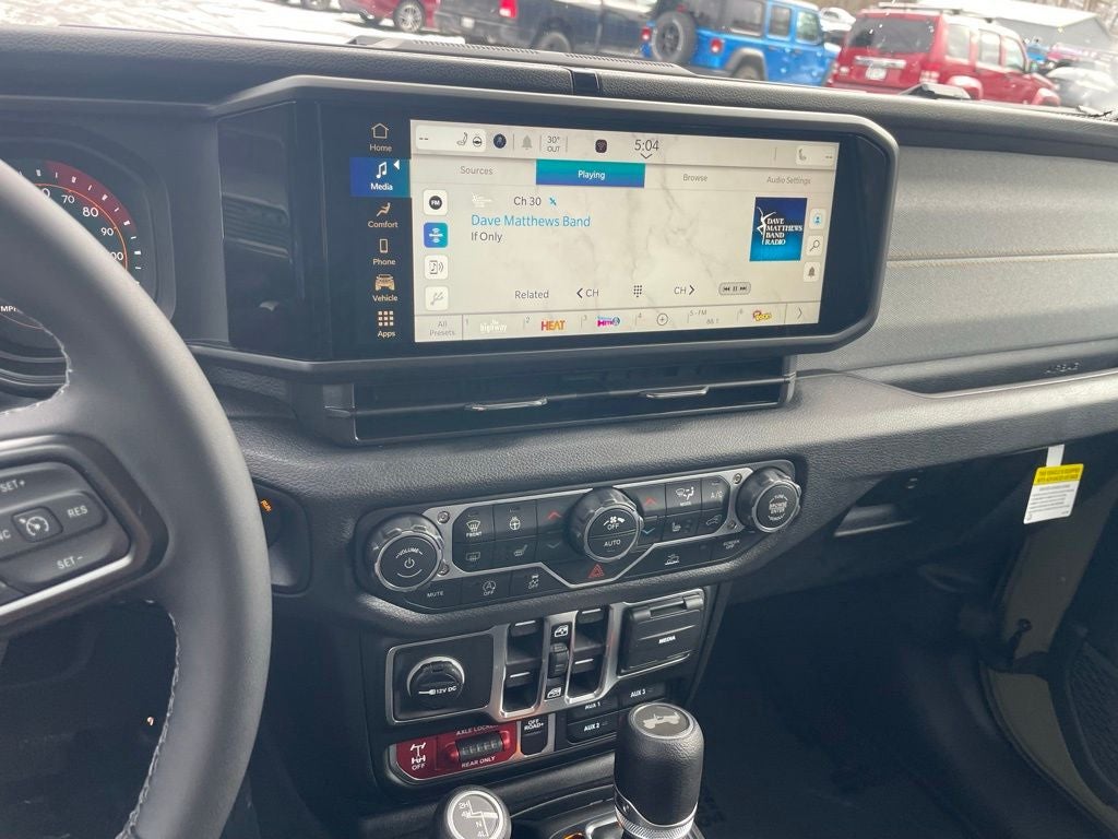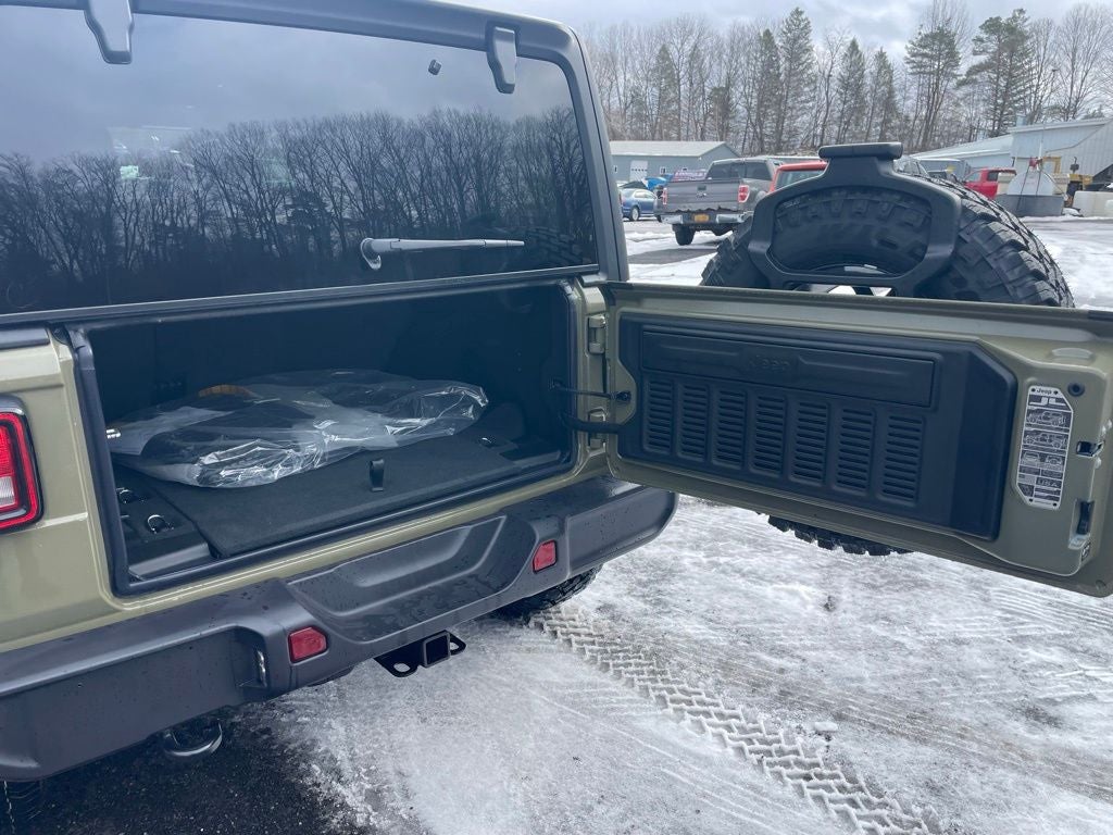 This Vehicle Features Convenience Group (2-Door Passive Entry, Front Door Locks, Air Conditioning with Auto Temp Control, Air Filtering, Cluster 7.0 TFT Color Display, Emergency/Assistance Call, Heated Front Seats, Heated Steering Wheel, and Universal Garage Door Opener), Quick Order Package 22W Willys (4-Wheel Drive Swing Gate Decal, 7 and 4 Pin Wiring Harness, Advanced Brake Assist, Automatic Headlamps, Auxiliary Switches, Black Grille with Gloss Black Rings, Class II Receiver Hitch, Conventional Differential Front Axle, Corning Gorilla Glass, Dana M210 Wide HD Tube Front Axle, Dana M220 Wide Rear Axle, Daytime Running Lamps LED Accents, Deep Tint Sunscreen Windows, E-Locker Rear Axle, Enhanced Adaptive Cruise Control, Front LED Fog Lamps, Full Speed Forward Collision Warning Plus, Injection Molded Black Rear Bumper, LED Premium Reflector Headlamps, Mold in Color Bumper with Gloss Black, Molded in Color Rubicon Highline Flare, MOPAR All-Weather Floor Mats, Off-Road Plus Mode, Power Heated Mirrors, Premium Wrapped Steering Wheel, Security Alarm, Sun Visors with Illuminated Vanity Mirrors,