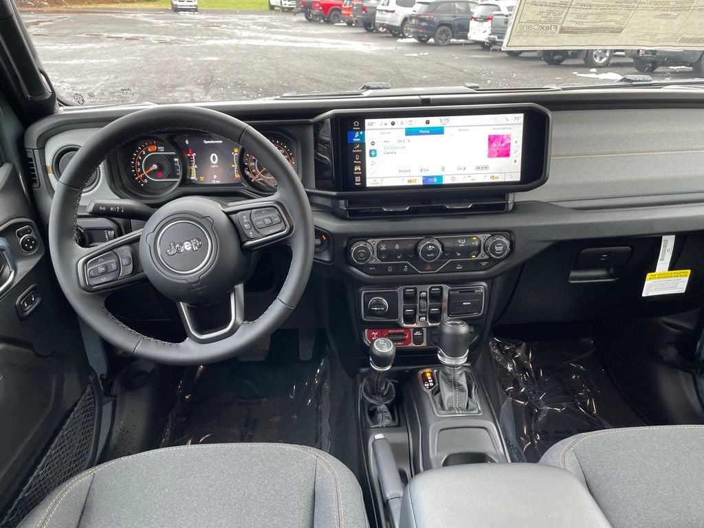 This Vehicle Features Convenience Group (2-Door Passive Entry, Front Door Locks, Air Conditioning with Auto Temp Control, Air Filtering, Cluster 7.0 TFT Color Display, Emergency/Assistance Call, Heated Front Seats, Heated Steering Wheel, and Universal Garage Door Opener), Quick Order Package 22W Willys (4-Wheel Drive Swing Gate Decal, 7 and 4 Pin Wiring Harness, Advanced Brake Assist, Automatic Headlamps, Auxiliary Switches, Black Grille with Gloss Black Rings, Class II Receiver Hitch, Conventional Differential Front Axle, Corning Gorilla Glass, Dana M210 Wide HD Tube Front Axle, Dana M220 Wide Rear Axle, Daytime Running Lamps LED Accents, Deep Tint Sunscreen Windows, E-Locker Rear Axle, Enhanced Adaptive Cruise Control, Front LED Fog Lamps, Full Speed Forward Collision Warning Plus, Injection Molded Black Rear Bumper, LED Premium Reflector Headlamps, Mold in Color Bumper with Gloss Black, Molded in Color Rubicon Highline Flare, MOPAR All-Weather Floor Mats, Off-Road Plus Mode, Power Heated Mirrors, Premium Wrapped Steering Wh
