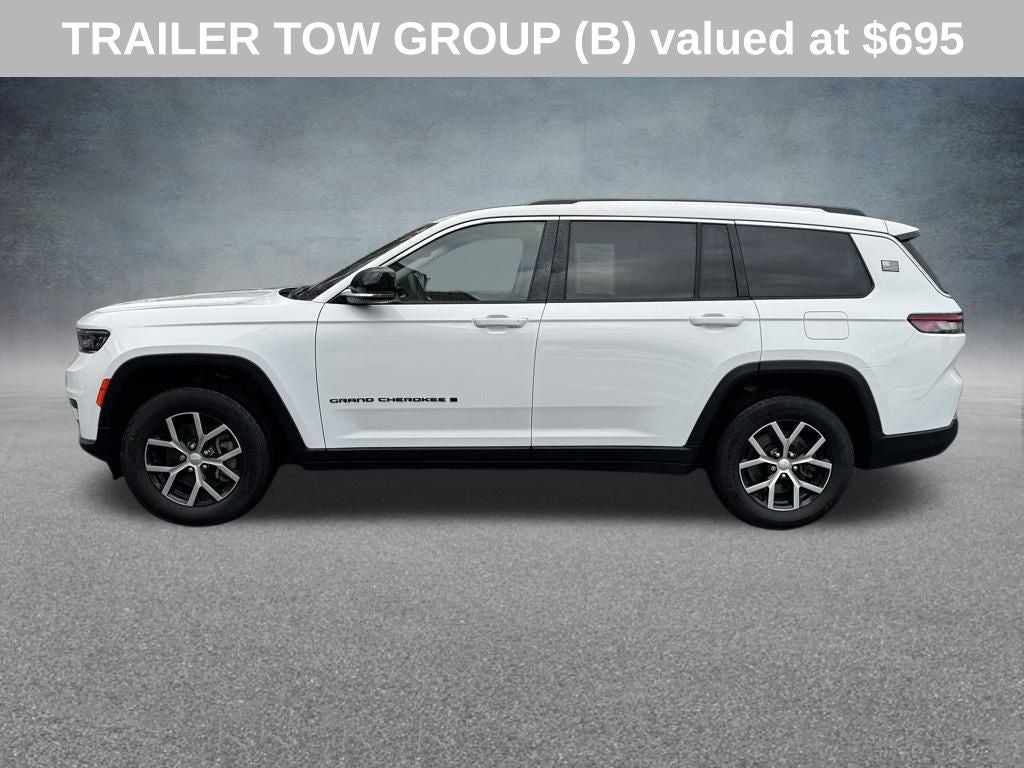 Bright White Clearcoat 2023 Jeep Grand Cherokee L Limited 4WD 8-Speed Automatic 3.6L V6 24V VVT 220 Amp Alternator, 2nd Row 60/40 Bench w/Manual Tip/Slide, 2nd Row Seat Center Armrest/Cupholders, 3 Rear Seat Head Restraints, 3.45 Rear Axle Ratio, 3rd row seats: split-bench, 4-Wheel Disc Brakes, 6 Speakers, 7-Passenger Seating, ABS brakes, Active Noise Control System, Air Conditioning, Alloy wheels, AM/FM radio: SiriusXM with 360L, Anti-whiplash front head restraints, Audio memory, Auto High-beam Headlights, Automatic Headlamp Leveling System, Automatic temperature control, Brake assist, Bumpers: body-color, Capri Leatherette Seats, Center Rear 3-Point Seat Belt, Compass, Delay-off headlights, Driver door bin, Driver vanity mirror, Dual front impact airbags, Dual front side impact airbags, Electronic Stability Control, Emergency communication system, Four wheel independent suspension, Front anti-roll bar, Front Bucket Seats, Front Center Armrest w/Storage, Front dual zone A/C, Front fog lights, Front License Plate Bracket, Front reading lights, Fully automatic headlights, Garage door transmitter, Heated door mirrors, Heated front seats, Heated rear seats, Heated steering wheel, Heavy-Duty Engine Cooling, Illuminated entry, Knee airbag, Low tire pressure warning, Manual Fold Seatbacks, Memory seat, Molded In Color Black/Gloss Black Roof Rails, Navigation System, Normal Duty Suspension, Occupant sensing airbag, Outside temperature display, Overhead airbag, Overhead console, Panic alarm, ParkView Rear Back-Up Camera, Passenger door bin, Passenger vanity mirror, Power door mirrors, Power driver seat, Power Liftgate, Power passenger seat, Power steering, Power windows, Quick Order Package 23E, Radio data system, Radio: Uconnect 5 Nav w/10.1 Display, Rear air conditioning, Rear anti-roll bar, Rear Load Leveling Suspension, Rear reading lights, Rear window defroster, Rear window wiper, Reclining 3rd row seat, Remote keyless entry, Security system, Speed control, Speed-Sensitive Wipers, Split folding rear seat, Spoiler, Steering wheel mounted audio controls, Tachometer, Telescoping steering wheel, Tilt steering wheel, Traction control, Trailer Hitch Zoom, Trailer Tow Group (B) (DISC), Trip computer, Turn signal indicator mirrors, Variably intermittent wipers, Voltmeter, Wheels: 18 x 8.0 Fully Painted Aluminum, Wheels: 18 x 8.0 Polished/Painted Aluminum.