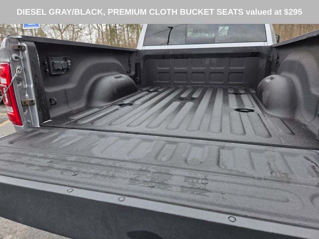 Billet Silver Metallic Clearcoat 2024 Ram 2500 Big Horn 4WD 8-Speed Automatic 6.4L V8 115V Auxiliary Front Power Outlet, 12 Touchscreen Display, 2 Way Rear Headrest Seat, 220 Amp Alternator, 2nd Row In Floor Storage Bins, 3.73 Axle Ratio, 4 Way Front Headrests, 4-Wheel Disc Brakes, 40/20/40 Split Bench Seat, 400W Inverter, 4G LTE Wi-Fi Hot Spot, 5th Wheel/Gooseneck Towing Prep Group, 6 Speakers, 9 Alpine Speakers w/Subwoofer, ABS brakes, Active Noise Control System, Air Conditioning, Air Conditioning ATC w/Dual Zone Control, Alexa Built-In, All R1 High Radios, All Radio Equipped Vehicles, Anti-Spin Differential Rear Axle, Apple CarPlay, Auto Power-Folding Mirrors, Bed Utility Group, Big Horn IP Badge, Black Exterior Mirrors, Blind Spot & Cross Path Detection, Bluetooth® Handsfree Phone & Audio, Brake assist, Bumpers: chrome, Center Hub, Center Stack Storage Drawer, Clearance Lamps, Cloth 40/20/40 Bench Seat, Cluster 7.0 TFT Color Display, Compass, Connected Travel & Traffic Services, Connectivity - US/Canada, CTR Stop Lamp w/Cargo View Camera, Dampened Tailgate, Delay-off headlights, Disassociated Touchscreen Display, Driver door bin, Dual front impact airbags, Dual front side impact airbags, Dual Glove Boxes, Electronic Stability Control, Electronically Controlled Throttle, Emergency communication system: SiriusXM Guardian, Exterior 115V AC Outlet, Exterior Mirrors Courtesy Lamps, Exterior Mirrors w/Heating Element, Exterior Mirrors w/Supplemental Signals, Foam Bottle Insert (Door Trim Panel), Footwell Courtesy Lamp, For Details, Visit DriveUconnect.com, For More Info, Call 800-643-2112, Forward & Reverse Utility Lights, Front anti-roll bar, Front Armrest w/Cupholders, Front Center Armrest w/Storage, Front Center Seat Cushion Storage, Front Fog Lamps, Front LED Fog Lamps, Front License Plate Bracket, Front reading lights, Front Seat Back Map Pockets, Fully automatic headlights, Global Telematics Box Module (TBM), Glove Box Lamp, Google Android Auto, GPS Antenna Input, GPS Navigation, HD Radio, Heated door mirrors, Heated Front Seats, Heated Steering Wheel, Heavy Duty Snow Plow Prep Group, Illuminated entry, Integrated Center Stack Radio, Integrated Voice Command w/Bluetooth®, Leather Wrapped Steering Wheel, LED Bed Lighting, LED Reflector Headlamps, LED Tail Lamps, Level 2 Equipment Group, Locking Lower Glove Box, Low tire pressure warning, Manual Adjust 4-Way Driver Seat, Manual Adjust 4-Way Front Passenger Seat, Media Hub w/2 Charge Only USBs, Mirror Running Lights, MOPAR Deployable Bed Step, MOPAR Front & Rear Rubber Floor Mats, MOPAR Spray In Bedliner, Occupant sensing airbag, Off-Road Information Pages, Outside temperature display, Overhead airbag, Overhead console, Panic alarm, ParkSense Front/Rear Park Assist System, ParkView Rear Back-Up Camera, Passenger door bin, Passenger vanity mirror, Power 2-Way Driver Lumbar Adjust, Power Adjust 8-Way Driver Seat, Power Adjust Mirrors, Power Adjustable Convex Aux Mirrors, Power Adjustable Pedals, Power door mirrors, Power Heated Fold Telescope Mirrors, Power steering, Power Telescoping Mirrors, Power windows, Premium Cloth 40/20/40 Bench Seat (DISC), Premium Lighting Group, Protection Group, Quick Order Package 2GZ Big Horn, Radio data system, Radio: Uconnect 3 w/5 Display, Radio: Uconnect 5 Nav w/12.0 Display, Rear 60/40 Folding Seat, Rear anti-roll bar, Rear Dome w/On/Off Switch Lamp, Rear Folding Seat, Rear Power Sliding Window, Rear seat center armrest, Rear step bumper, Rear Wheelhouse Liners, Rear Window Defroster, Remote keyless entry, Remote Start System, Remote USB Port - Charge Only, Security Alarm, Selectable Tire Fill Alert, SiriusXM Radio Service, SiriusXM w/360L, Speed control, Steering Wheel Mounted Audio Controls, Storage Tray, Sun Visors w/Illuminated Vanity Mirrors, Surround View Camera System, Tachometer, Tilt steering whee