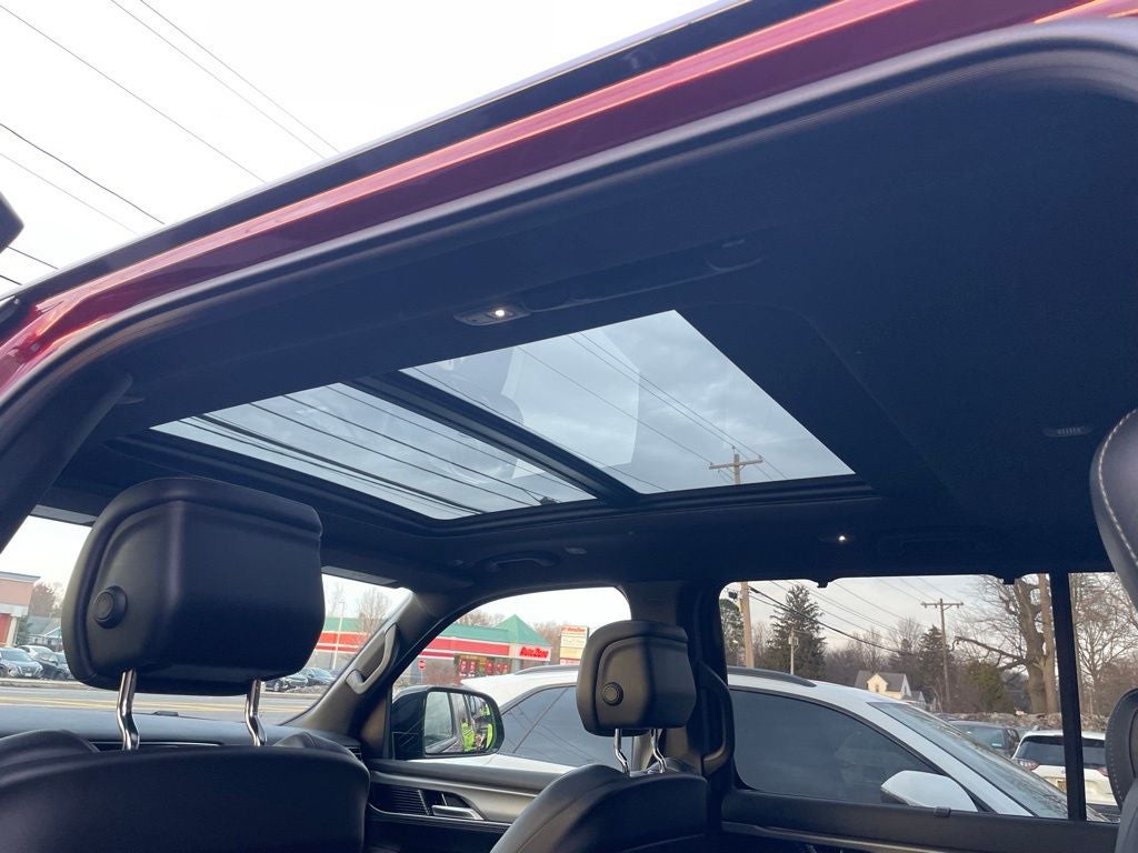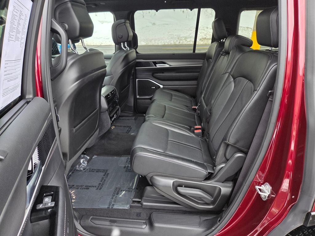 Velvet Red Pearlcoat 2025 Jeep Wagoneer Series II 4WD 8-Speed Automatic 3.0L I6 10 Speakers, 118 MPH Maximum Speed Calibration, 2 Speed On Demand Transfer Case, 2nd Row Manual Window Shades, 3 Panel Sunroof, 3rd row seats: bench, 4-Wheel Disc Brakes, 40/20/40 2nd Row Bench Power Tip/Slide, 60/40 Power Recline 3rd Row Seat, 8-Passenger Seating, 8-Passenger Seating Package, ABS brakes, Adjustable Roof Rail Crossbars, Air Conditioning, All-Season Floor Mats, Alloy wheels, AM/FM radio: SiriusXM with 360L, Anti-whiplash front head restraints, Apple CarPlay/Android Auto, Audio memory, Auto Adjust In Reverse Exterior Mirrors, Auto High Beam Headlamp Control, Auto Power Folding Exterior Mirrors, Auto Power-Folding Mirrors, Auto-dimming door mirrors, Auto-Dimming Exterior Driver Mirror, Auto-dimming Rear-View mirror, Auto-leveling suspension, Automatic temperature control, Black Exterior Accents, Black Roof, Brake assist, Bumpers: body-color, Cargo Tray, Compass, Convenience Group I (DISC), Delay-off headlights, Driver door bin, Driver vanity mirror, Driver's Seat Mounted Armrest, Drowsy Driver Detection, Dual front impact airbags, Dual front side impact airbags, Electronic Rear Limited Slip Differential, Electronic Stability Control, Emergency communication system: Jeep Connect, Exterior Mirrors Approach Lamps, Exterior Mirrors w/Memory, Exterior Mirrors w/Supplemental Signals, Four wheel independent suspension, Front anti-roll bar, Front Bucket Seats, Front Center Armrest w/Storage, Front dual zone A/C, Front fog lights, Front reading lights, Fuel Tank Skid Plate Shield, Full Length Floor Console, Fully automatic headlights, Garage door transmitter, Genuine wood console insert, Genuine wood dashboard insert, Genuine wood door panel insert, Heads-Up Display, Heated door mirrors, Heated Exterior Mirrors, Heated front seats, Heated rear seats, Heated steering wheel, Heavy-Duty Engine Cooling, Illuminated entry, Intersection Collision Assist System, Knee airbag, Leather Trimmed Bucket Seats, Low tire pressure warning, Memory seat, Navigation System, Normal Duty Suspension, Occupant sensing airbag, Outside temperature display, Overhead airbag, Overhead console, Overland Appearance Package, Overland Exterior Accents, P&P Park & Unpark Assist w/Stop System, Panic alarm, ParkView Rear Back-Up Camera, Passenger door bin, Passenger seat mounted armrest, Passenger vanity mirror, Power adjustable front head restraints, Power door mirrors, Power driver seat, Power Liftgate, Power passenger seat, Power steering, Power windows, Quadra-Lift Air Suspension, Quick Order Package 25P Overland, Radio data system, Radio: Uconnect 5 Nav w/10.1 Display, Rain sensing wipers, Rear air conditioning, Rear anti-roll bar, Rear dual zone A/C, Rear reading lights, Rear seat center armrest, Rear window defroster, Rear window wiper, Reclining 3rd row seat, Remote keyless entry, Removable Rear Tow Hook, Security system, Selec-Speed Control, Semi Active Damping, Side Distance Warning, Speed control, Speed-sensing steering, Speed-Sensitive Wipers, Split folding rear seat, Steering wheel memory, Steering wheel mounted audio controls, Surround View Camera System, Tachometer, Telescoping steering wheel, Tilt steering wheel, Traction control, Traffic Sign Recognition, Trailer Brake Control, Trailer Hitch Zoom, Trip computer, Turn signal indicator mirrors, Vapor Tow Hooks, Variably intermittent wipers, Ventilated front seats, Voltmeter, Wheels: 20 x 9.0 Machine Face Painted Aluminum, Wheels: 20 x 9.0 Premium 2 Aluminum.