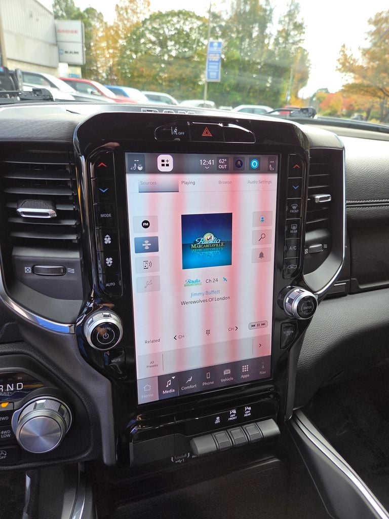 Billet Silver Metallic Clearcoat 2025 Ram 1500 Laramie 4WD 8-Speed Automatic 3.0L I6 10 Speakers, 3 Rear Seat Head Restraints, 3.55 Rear Axle Ratio, 4 Way Front Headrests, 4-Wheel Disc Brakes, 4G LTE Wi-Fi Hot Spot, ABS brakes, Air Conditioning, Alloy wheels, AM/FM radio: SiriusXM with 360L, Apple CarPlay, Apple CarPlay/Android Auto, Audio memory, Auto High-beam Headlights, Auto Power-Folding Mirrors, Auto-dimming door mirrors, Auto-Dimming Exterior Driver Mirror, Auto-dimming Rear-View mirror, Automatic temperature control, Brake assist, Bumpers: chrome, Chrome Exterior Mirrors, Compass, Connected Travel & Traffic Services, Connectivity - US/Canada, Convex Wide-Angle Exterior Mirror Insert, Delay-off headlights, Driver door bin, Driver Seat Memory, Driver vanity mirror, Dual front impact airbags, Dual front side impact airbags, Electronic Stability Control, Exterior Mirrors Courtesy Lamps, Exterior Mirrors w/Heating Element, Exterior Mirrors w/Memory, Exterior Mirrors w/Supplemental Signals, Front anti-roll bar, Front Center Armrest w/Storage, Front dual zone A/C, Front fog lights, Front License Plate Bracket, Front reading lights, Front Seat Back Map Pockets, Front wheel independent suspension, Fully automatic headlights, Garage door transmitter, Google Android Auto, GPS Antenna Input, GPS Navigation, HD Radio, Heated door mirrors, Heated Front Seats, Heated front seats, Heated rear seats, Heated Steering Wheel, Heated steering wheel, Illuminated entry, Integrated Voice Command w/Bluetooth®, Laramie Level 1 Equipment Group, Leather steering wheel, Leather Trim 40/20/40 Bench Seat, Low tire pressure warning, Manufacturer's Statement of Origin, Memory seat, Navigation System, Occupant sensing airbag, Outside temperature display, Overhead airbag, Overhead console, Panic alarm, ParkView Rear Back-Up Camera, Passenger door bin, Passenger vanity mirror, Power 2-Way Driver Lumbar Adjust, Power 2-Way Passenger Lumbar Adjust, Power Adjust 8-Way Front Passenger Seat, Power door mirrors, Power driver seat, Power passenger seat, Power steering, Power windows, Quick Order Package 21H Laramie, Radio data system, Radio: Uconnect 5 Nav w/12.0 Display, Rain Sensitive Windshield Wipers, RAM Grille Badge - Chrome, Rear anti-roll bar, Rear reading lights, Rear seat center armrest, Rear step bumper, Remote keyless entry, Remote Tailgate Release, Security system, SiriusXM w/360L, Speed control, Split folding rear seat, Steering wheel mounted audio controls, Tachometer, Telescoping steering wheel, Tilt steering wheel, Traction control, Trip computer, Turn signal indicator mirrors, USB Host Flip, Variably intermittent wipers, Ventilated Front Seats, Ventilated front seats, Voltmeter, Wheels: 20 x 9 Premium Paint/Polish.